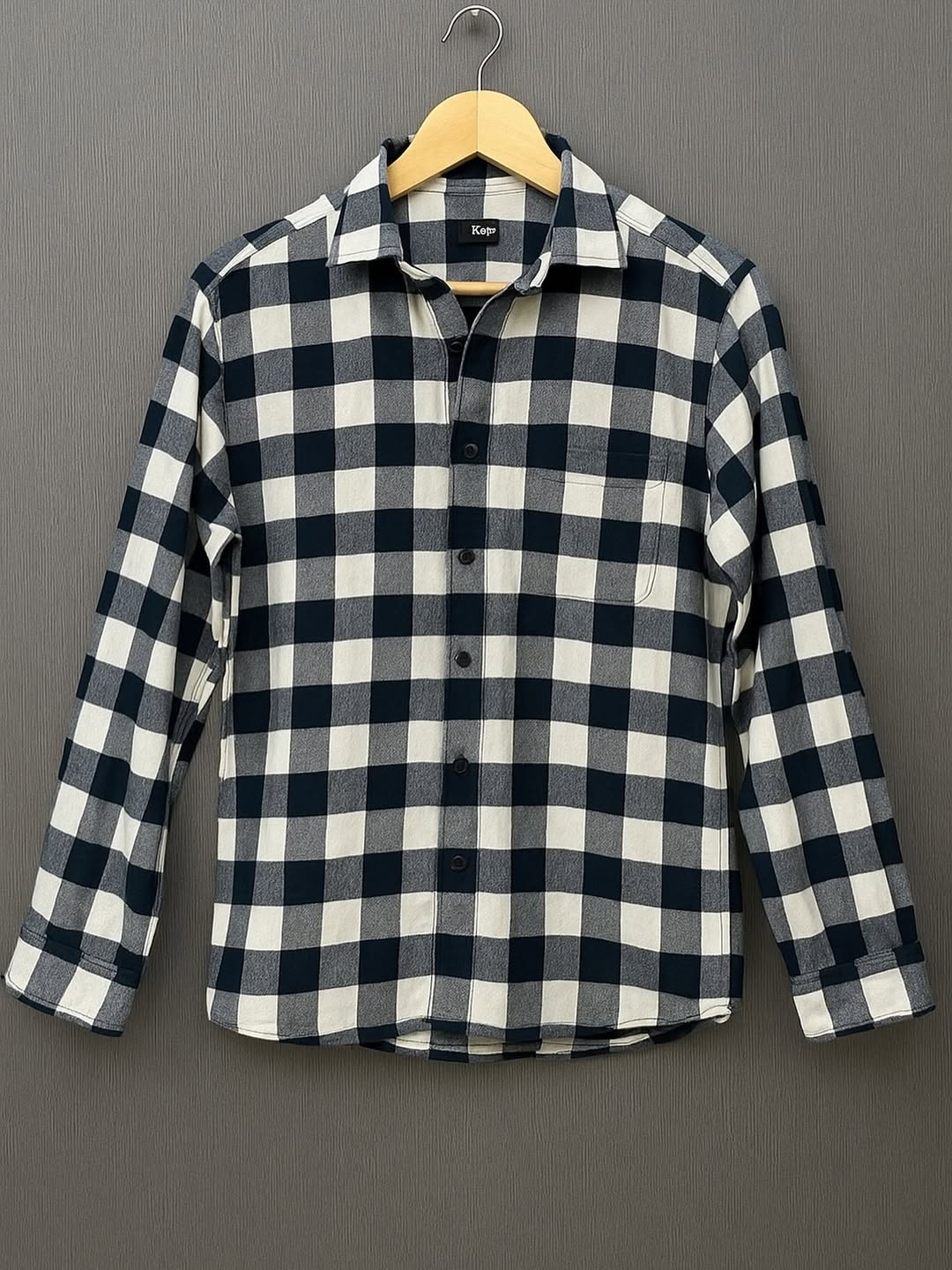 The bold black-and-white check pattern adds a timeless appeal, while the soft, breathable fabric ensures comfort throughout the day. With its structured collar, button-down front, and relaxed fit, this overshirt is ideal for casual outings, weekend looks, and urban styling.